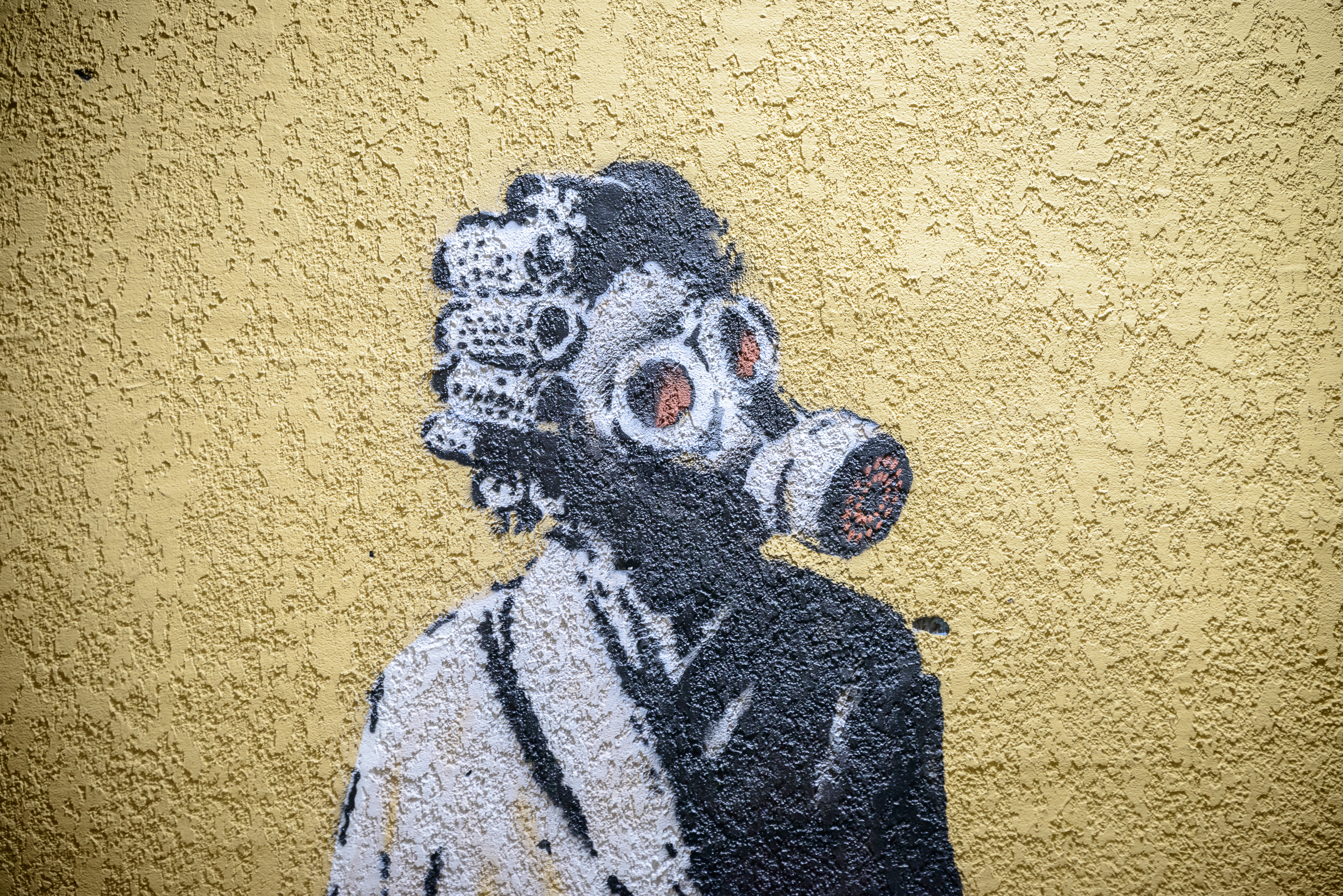 З 19 листопада фрагмент стіни з роботою британського стрит арт митця Бенксі, на якій зображено жінку в халаті з вогнегасником, знову можна переглянути в Національному заповіднику “Києво-Печерська лавра”.