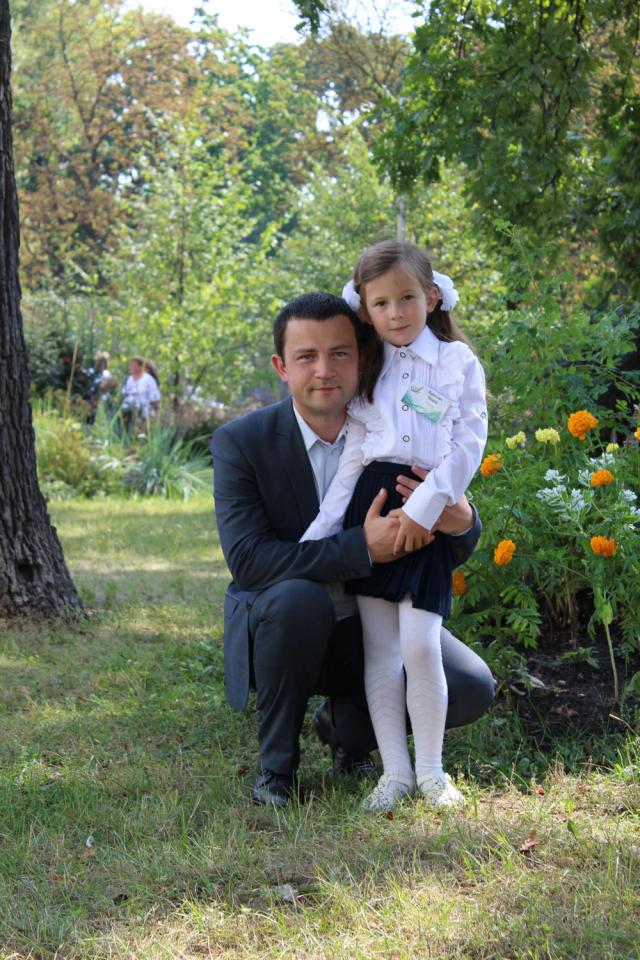 Тато Володимир Христич із донькою Марічкою, 1 вересня 2013