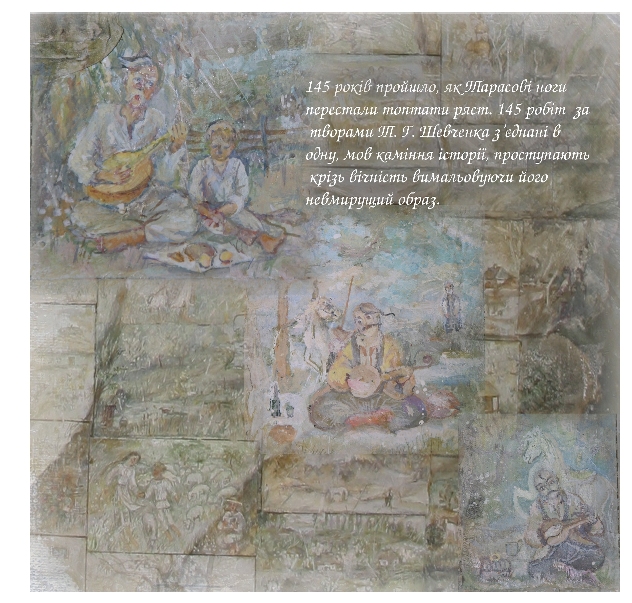 Приурочивши роботу до 144-річчя з дня смерті Тараса Шевченка, Надія Нікіфорова використала 144 фрагменти: з Тарасового життя і життя власного. Отже, у сумі постає число дев’ять — число заглиблення в себе, досконалості, любові, співчуття, ідеалізму, вразливості, милосердя, доброчинності, неупередженості, хисту художника, релігійності, здатності жити за Божественними стандартами. Дев’ятка представляє Початок і Кінець усього людського досвіду; останній прижиттєвий урок людства — Прощення.