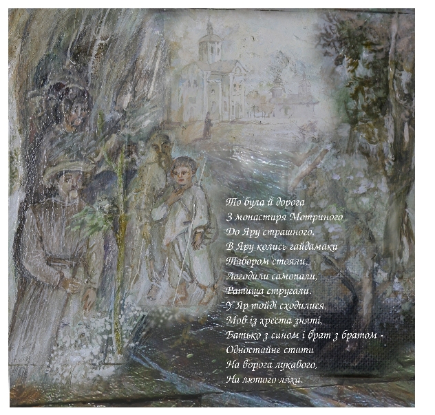 У сіро-блакитних поетових очах, а очі — то, як відомо, душа людини — мрійливі українські дівчата. На переніссі — покрова Пресвятої Богородиці.
