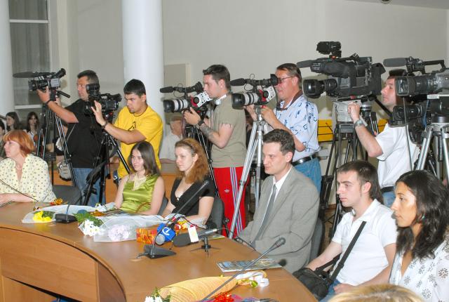 Кругла зала у Дніпропетровській обласній державній адміністрації (разом із письменницею Ольгою Кай)