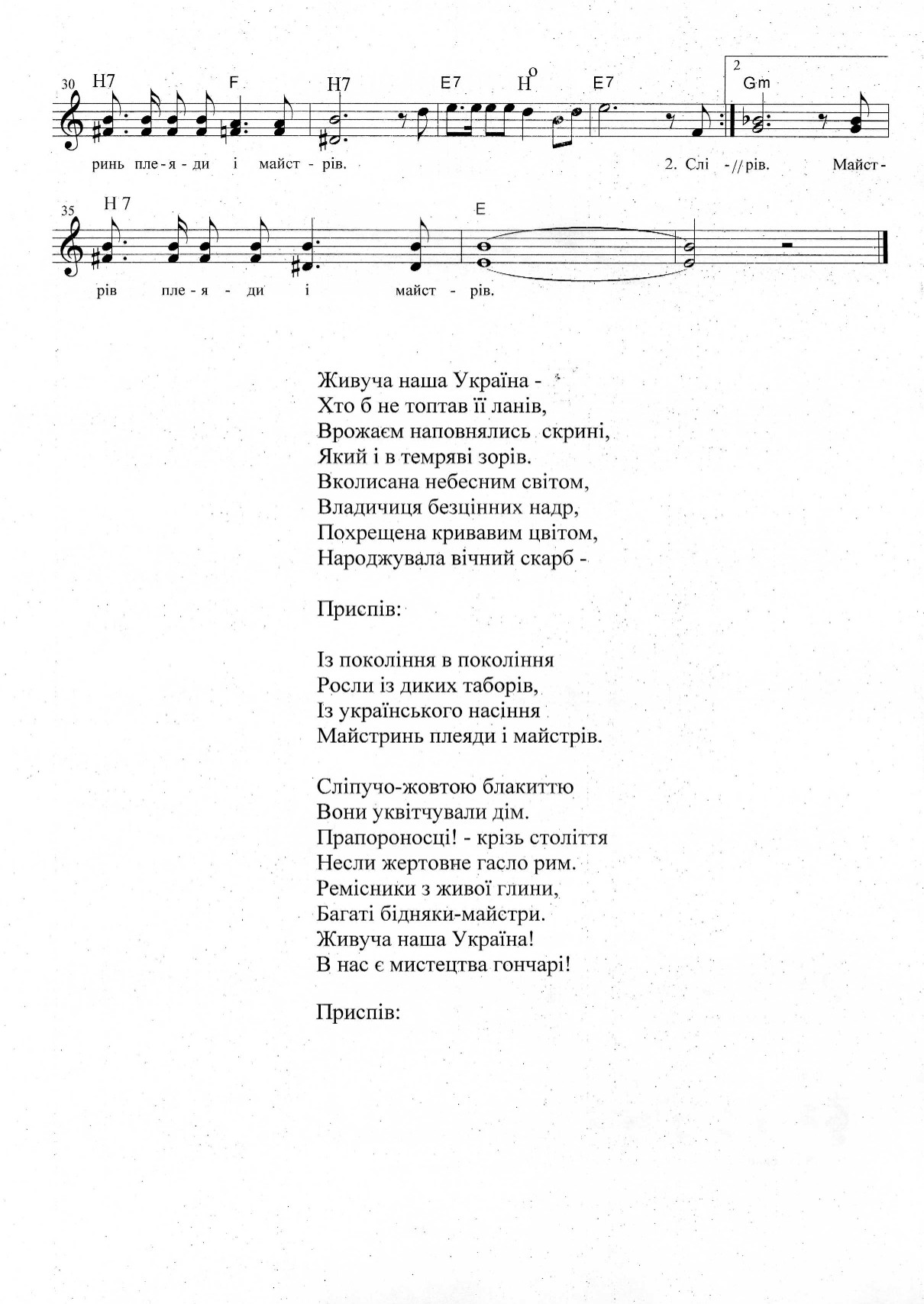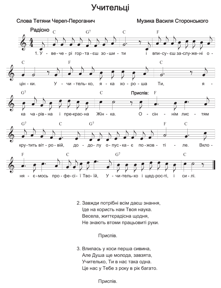Слова Еліни Заржицької, музика Олени Швець-Васіної.