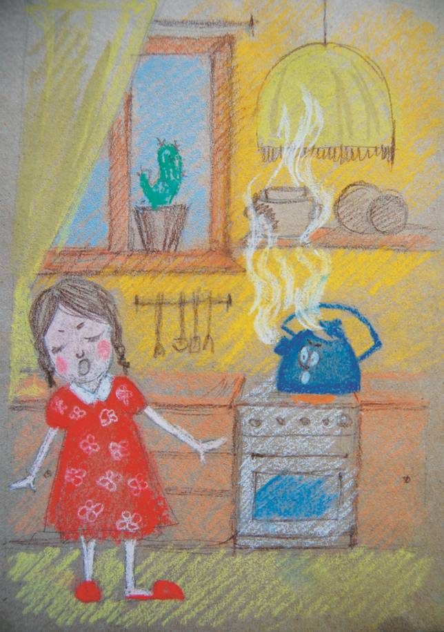 На одній кухні мешкав синій чайник. Він був дуже-дуже старий, закоптюжений, емаль на ньому вицвіла та давно вже не виблискувала. Чайник так довго жив у цій оселі на кухні, що йому здавалось він знав всі кухонні речі з часу свого народження.