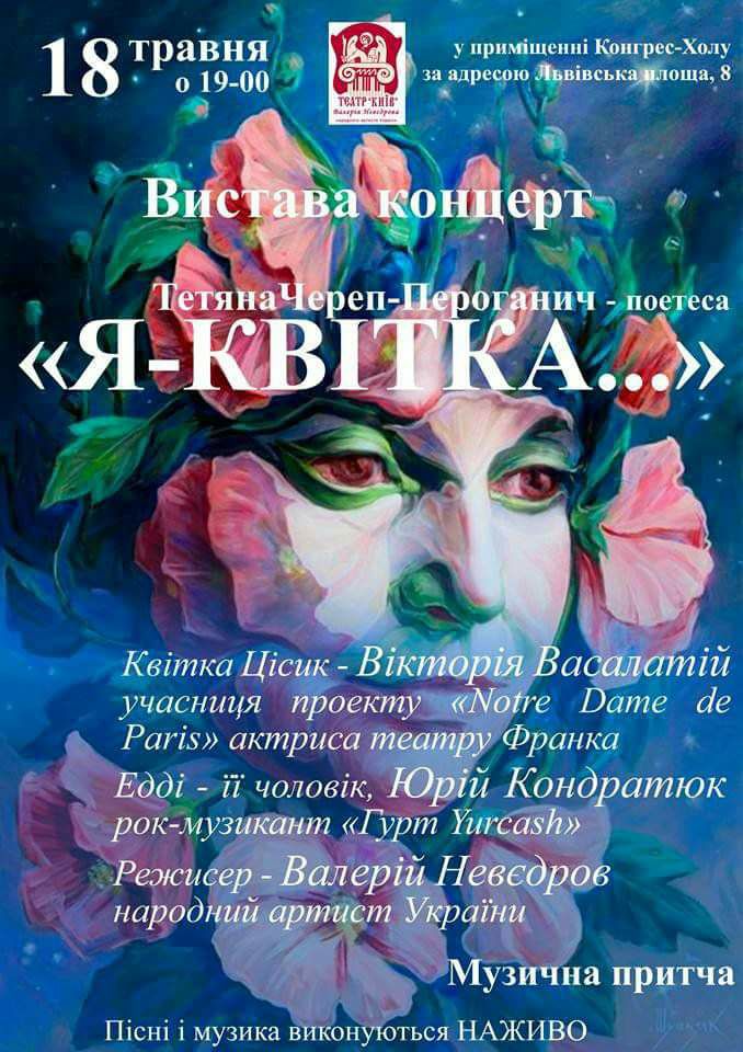 18 травня цього року у столичному Конгрес-холі відбудеться унікальний спектакль-концерт «Я – Квітка». Вперше виставу було показано в рамках Міжнародного театрального фестивалю «Марія» в театрі ім. Франко, де живе виконання і яскрава енергетика артистів нікого не залишила байдужими.